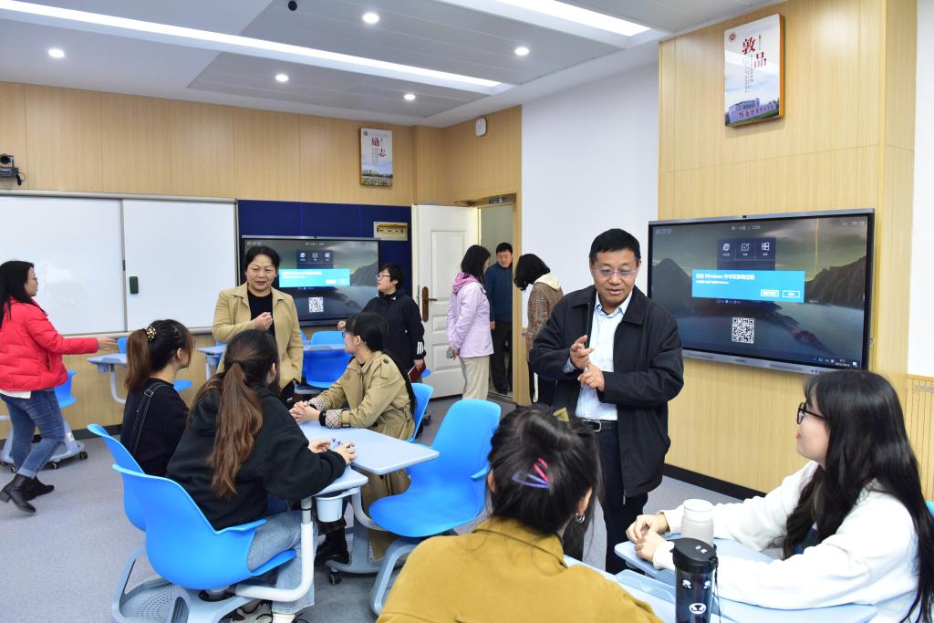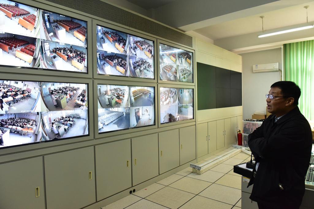 随后郭院长一行来到了监控室,检查教师着装、上课仪态和学生听讲情况,并现场督导相关人员加强教学和学习纪律。