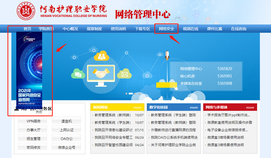 10月12日网络管理中心组织全院师生于线上观看了省委高校工委、省教育厅举办的“2021年国家网络安全宣传周河南省校园日活动”启动仪式。