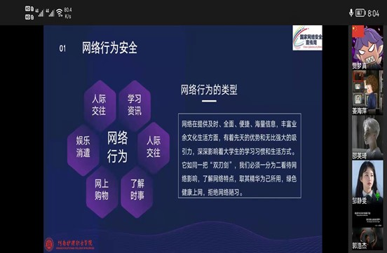 网络安全教育主题日当天,各个班级召开了网络安全主题班会,并积极组织学生参与了“大学生网络安全知识竞赛”,有效地提升了学生对网络安全的认识和防范技能。