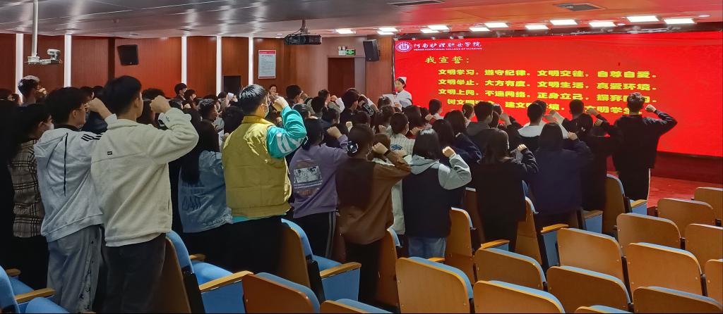 会上,21级学生代表陈星宇同学针对此次活动作出了表态。她将从自身做起,从身边小事做起,从现在做起,养成良好的文明行为习惯。