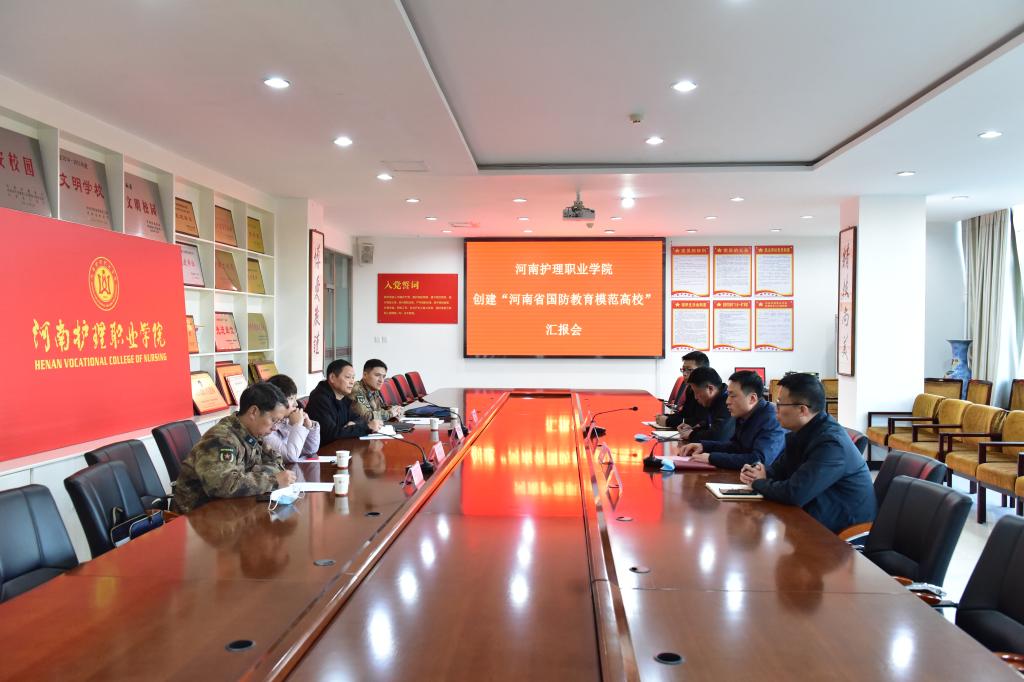 11月9日下午,河南省国防教育模范高校创建检查组到我院开展检查。安阳市委宣传部田夏楠科长,安阳市教育局李军科长,安阳军分区政治工作处李振兴干事,文峰区武装部政治工作科刘伟强科长一行四人莅临我院检查指导。学院武装部、院长办公室、保卫处负责人出席会议。会议由武装部副部长金志利同志主持。