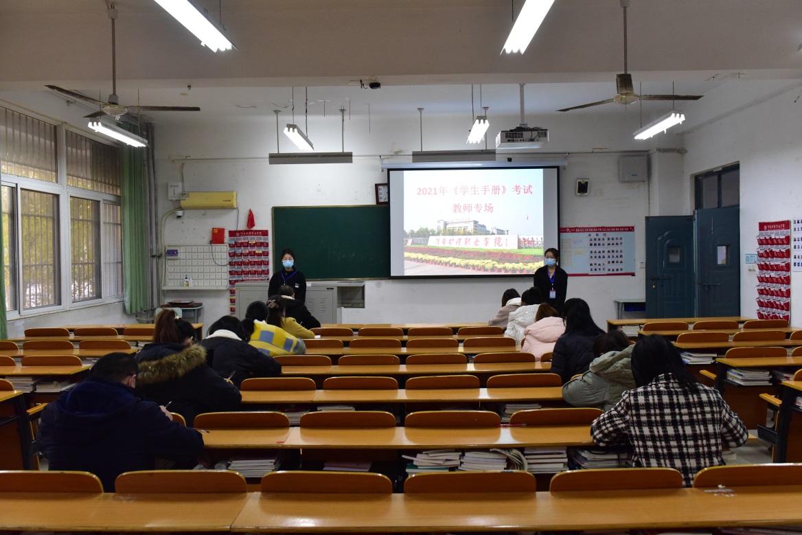 为贯彻“三全育人”教育,落实“文明行为习惯养成月”活动,加强护理系辅导员队伍建设,提高学生遵规守纪的意识和素养,11月17日下午,护理系组织2021级辅导员和全体同学同场竞技,进行了2021级《学生手册》专场考试,护理系党总支书记王昆仑亲临现场并进行指导。