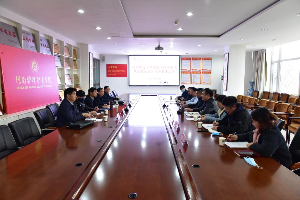 12月8日下午,省卫生健康委消防安全工作第二调研组莅临我院进行调研,本次调研组由省卫生健康委二级巡视员孙恒英领队,成员由郑大一附院保卫处处长陈春安、郑大三附院保卫科科长李立、省卫生健康委安全办干事金国强、省卫生健康委服务中心科长申献忠组成。我院院长郭茂华、副院长王家桥及院办、学生处、后勤管理处、医务室、药学检验系、保卫处等相关部门负责人陪同检查。