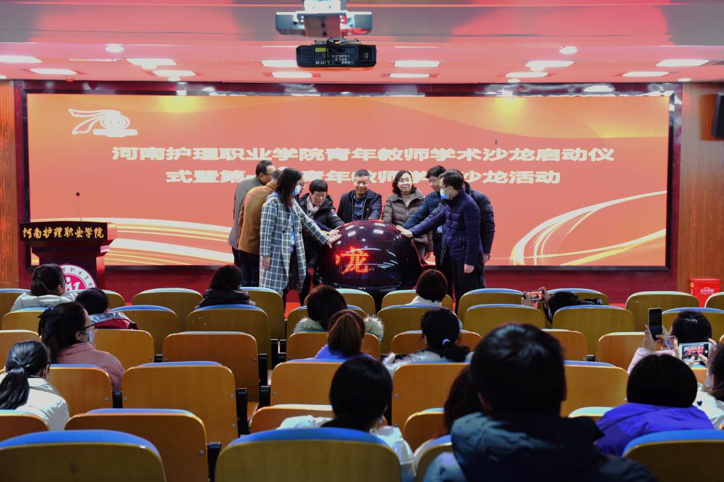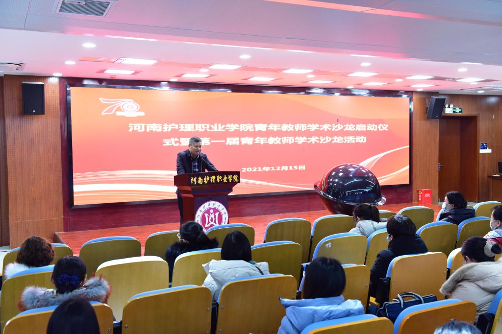 仪式启动前,郭茂华院长首先就学院发展建设现状及未来发展规划向全体青年教师进行了简要描述。郭院长指出,2021年适逢70周年校庆,经过七十年的发展建设,学院的办学质量、办学规模都发生了质的飞跃。“十二五”期间,学院由中专层次升格为大专,解决了“有没有”的问题,发展迈入新阶段;在“十三五”期间,新校区建设落成使用,在校生达到一万四千余人,解决了“大不大”的问题,发展跑出加速度;“十四五”期间,学院将重点解决“强不强”的问题,如何持续提升办学实力水平,实现升本目标将成为学院发展首要任务。科研实力作为重要衡量指标尤其需要广大青年教师的积极参与,学术沙龙的成立对于学院科研发展具有重要意义。一是,青年教师作为学院发展的重要力量,学术沙龙将成为交流思想、互相学习的重要平台。二是,学术沙龙的系列活动及成果将为学院教学和科研的发展贡献力量。三是,通过学术沙龙活动,有助于锻炼青年教师科研思维,提升科研能力和水平,实现青年教师快速成长。随后,郭院长宣布学术沙龙正式启动。