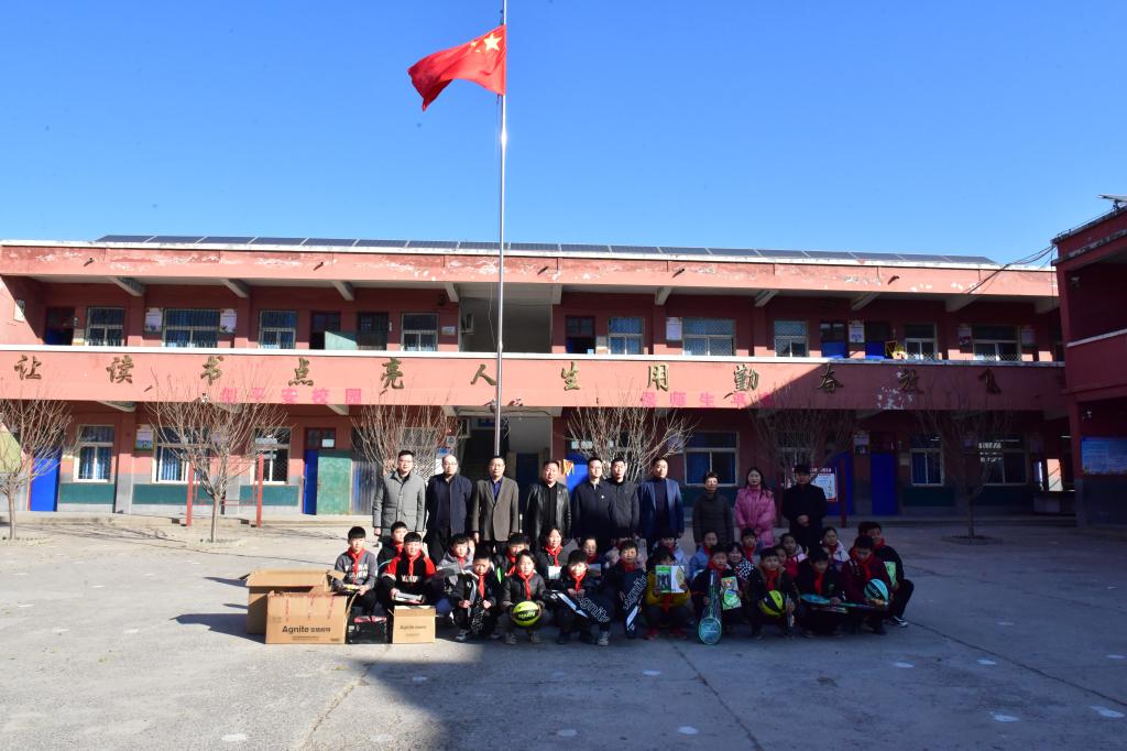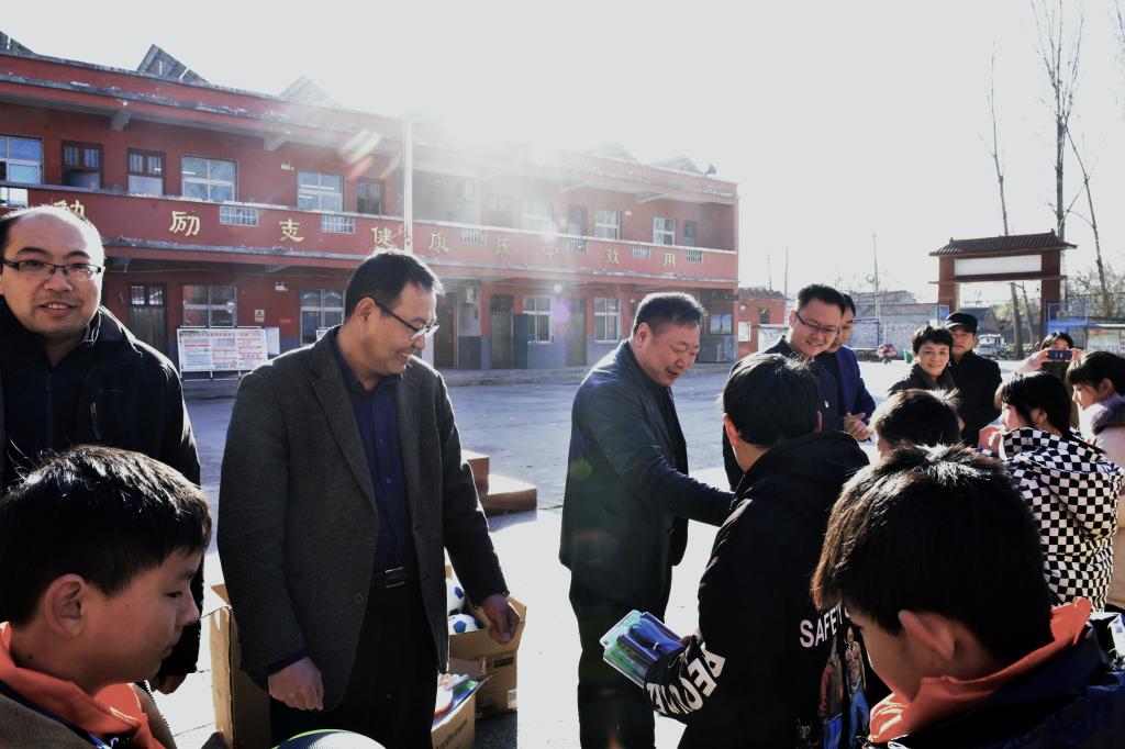 揭牌仪式结束后,王院长一行来到高平镇李堤村小学参与捐赠仪式,并代表学院向同学们捐赠了文体用品,王院长叮嘱同学们,要响应国家体育强国号召,加强体育锻炼,并鼓励同学们努力学习,成为未来国家栋梁。