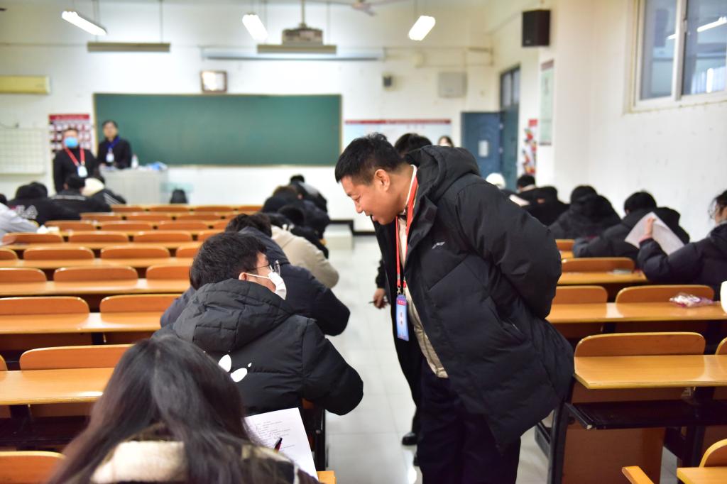 12月28日下午,郭院长带队巡视2021级各考场的期末考试工作。本学期2021级期末考试共持续三天,其中共设考场457个,涉及课程36门,班级89个,参考人数达16408人次。