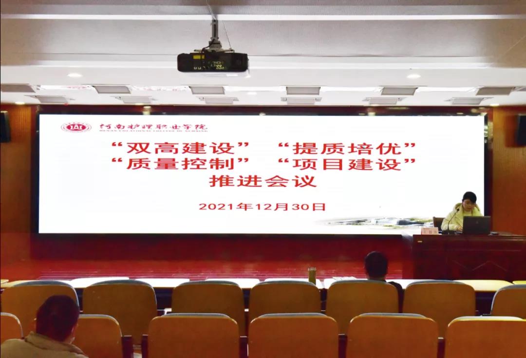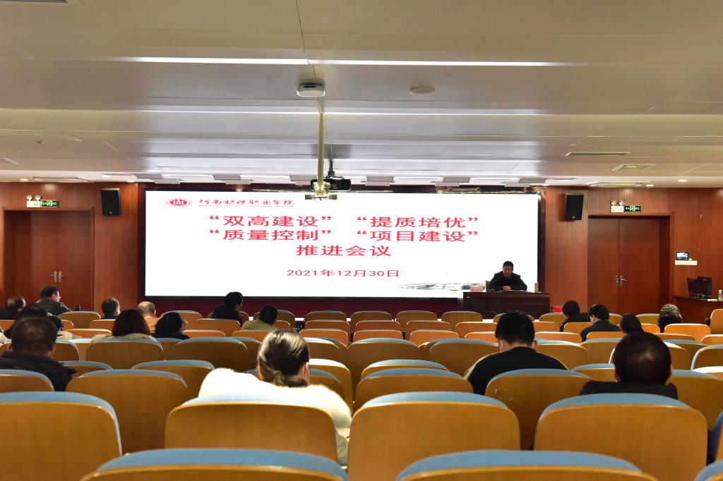 12月30日下午,学院“双高建设”“提质培优”“质量控制”“项目建设”推进会在学术报告厅一楼会议室召开。院长郭茂华出席会议并讲话,各部门负责人、各系部(马院)主任、副主任、教研室主任、教学干事及教务处全体工作人员参加会议,会议由副院长王家桥主持。