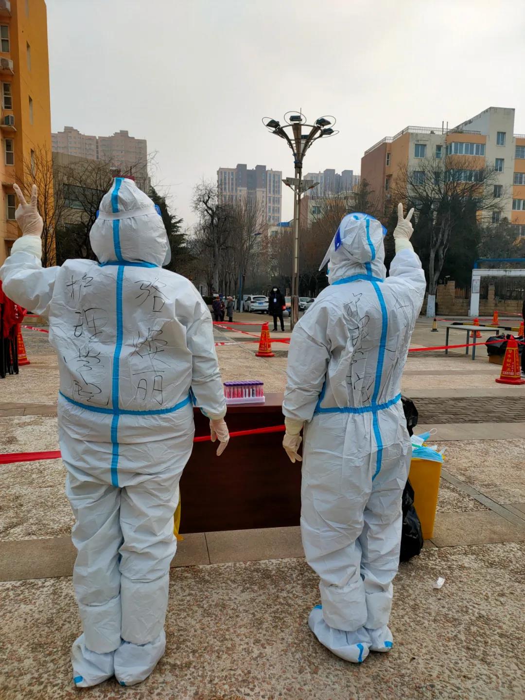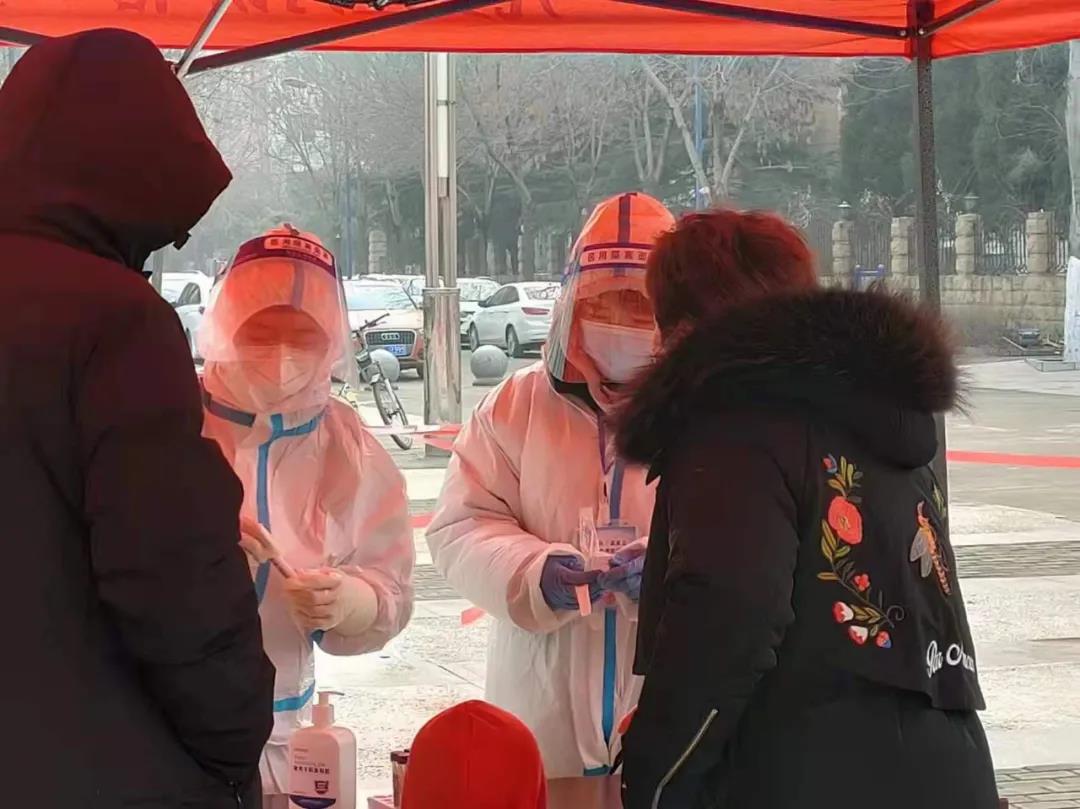“召之能战,战则必胜!”这是学院教师志愿者们出发前许下的铮铮誓言。抵达检测点后,大家即刻与社区工作人员对接,了解工作量情况和人员分布,不讲条件,不喊苦累,各司其职,密切协作,全身心投入工作。凛冽的寒风中,大家的手指在低温中已冻的无知觉,但依然坚守在各自岗位上,“虽然防护服和医用手套挡不住刺骨的寒风,但大家毫无退意”教师志愿者江雷振说。“我们的实战经验是我们教学生涯中最宝贵的经历”郭凡老师说道。