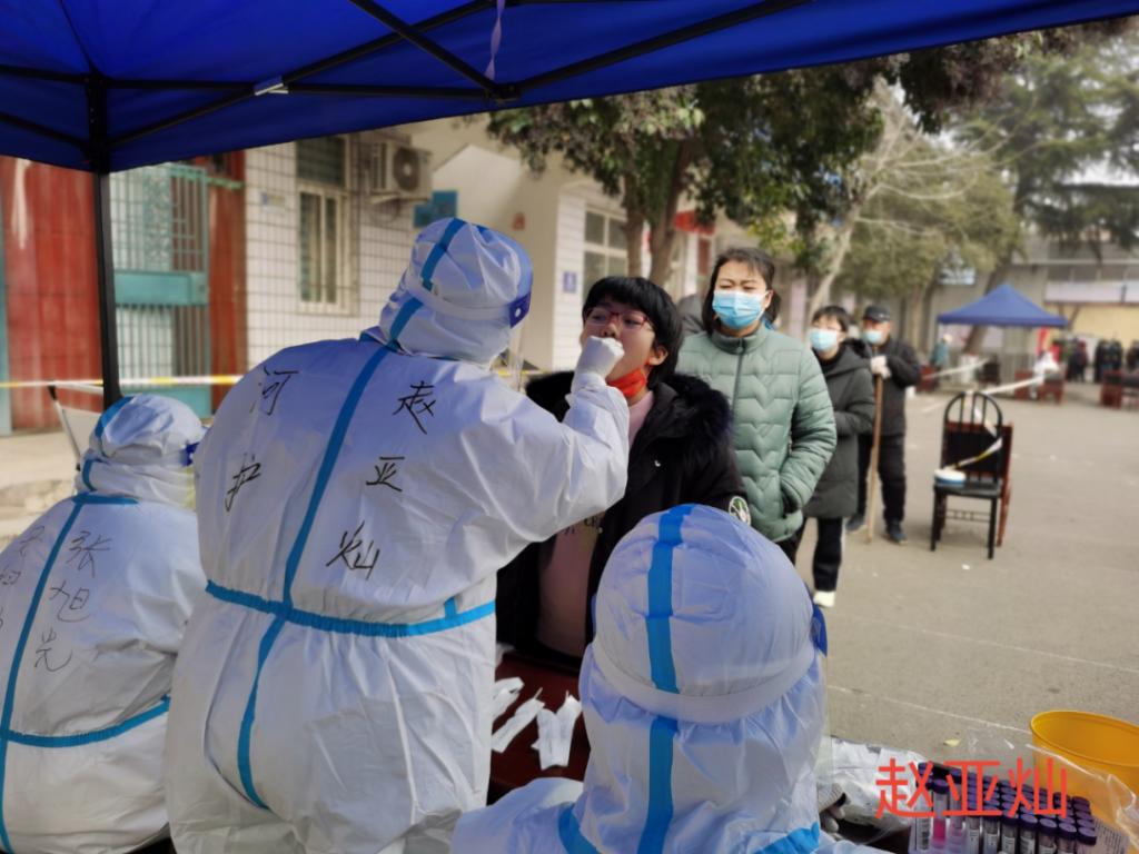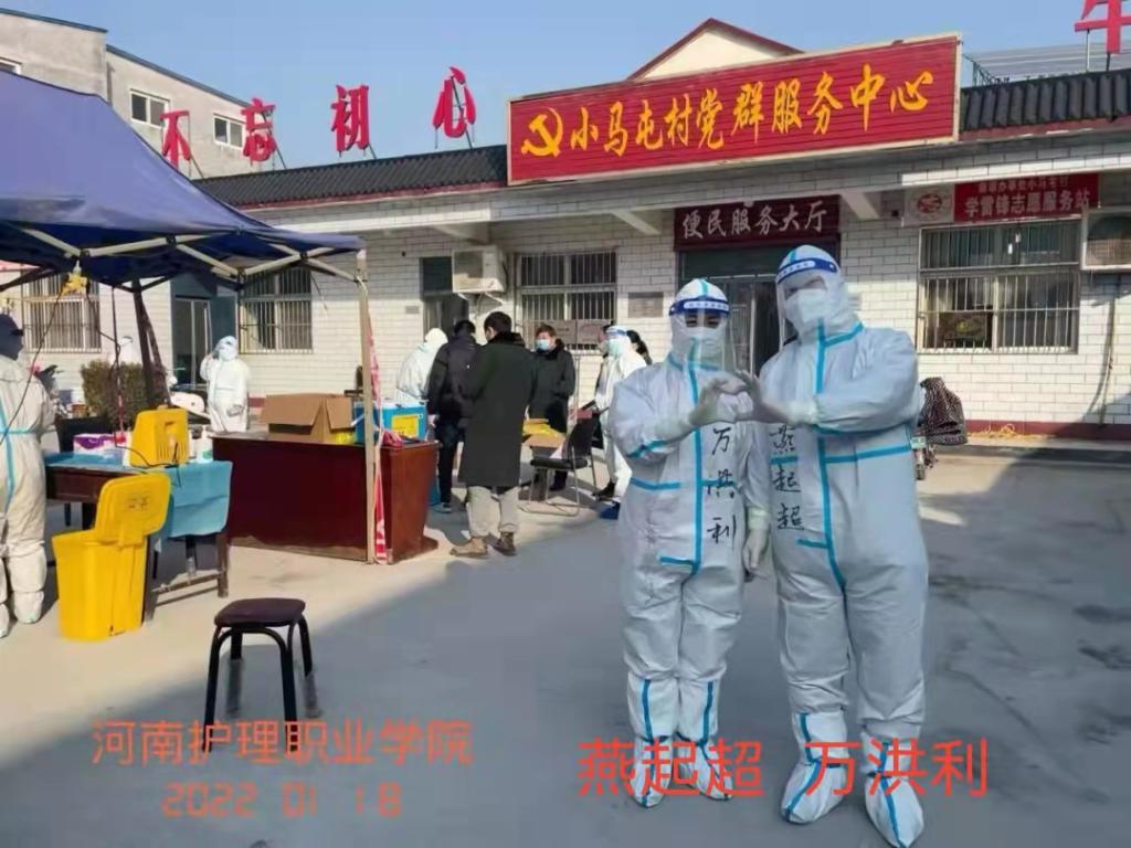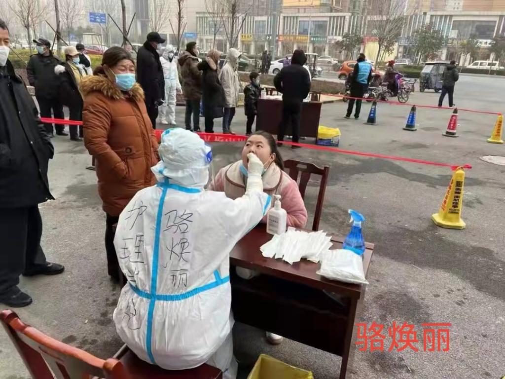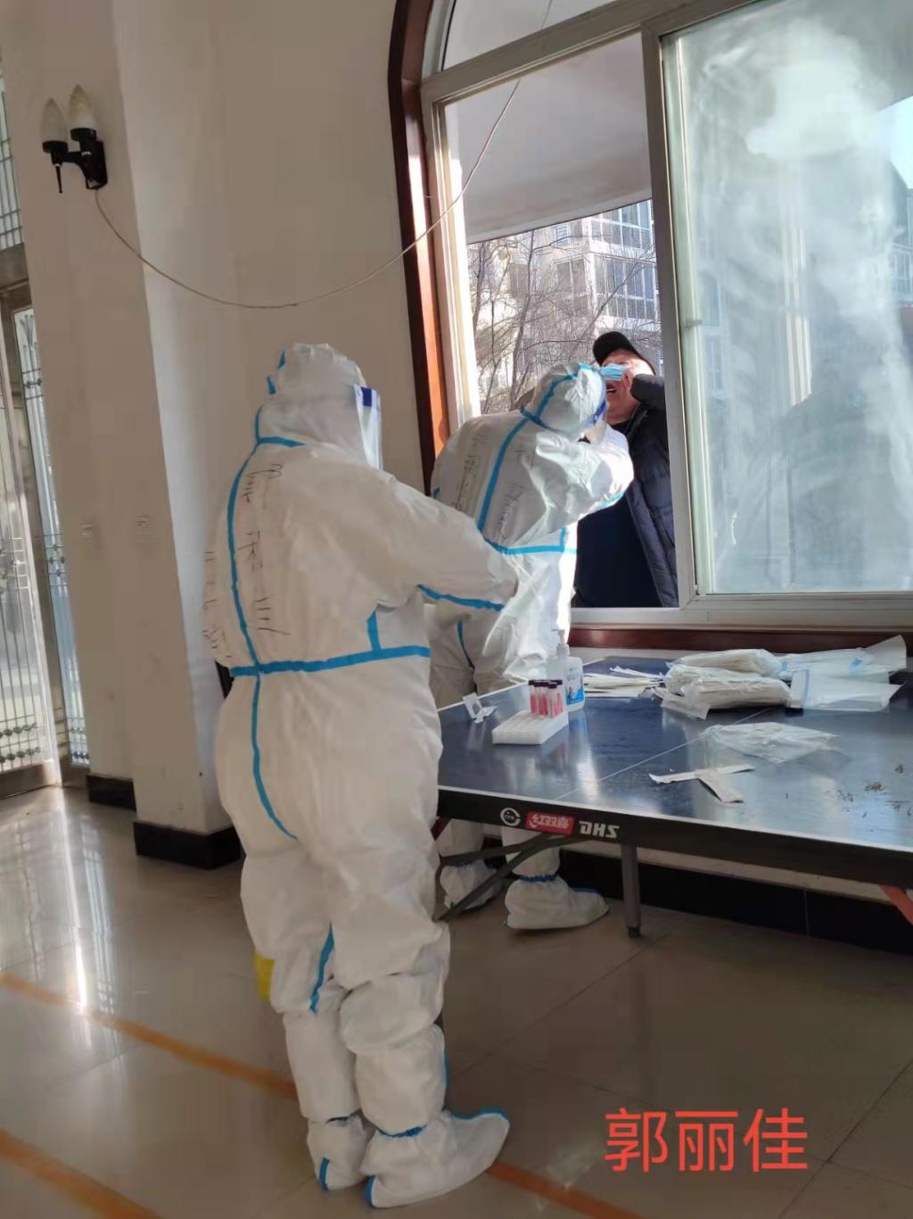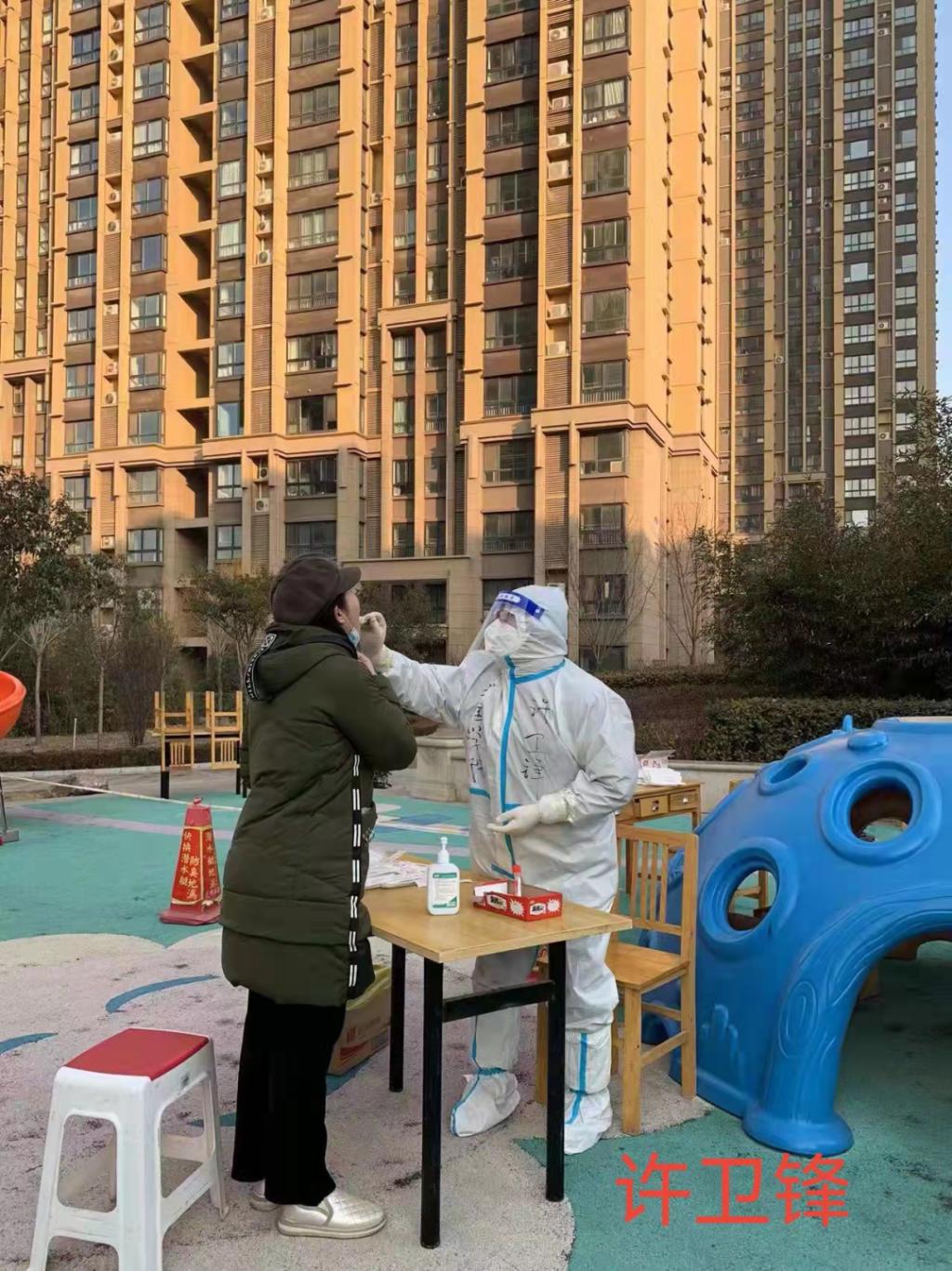 拿出棉签、深入咽部、快速擦拭、抽出采样……1月21日,学院纪检监察处燕起超在小马屯社区忙碌地采集核酸,身旁不远处,妻子万洪利和他重复着一样的动作,两人并肩作战投身疫情防控第一线。