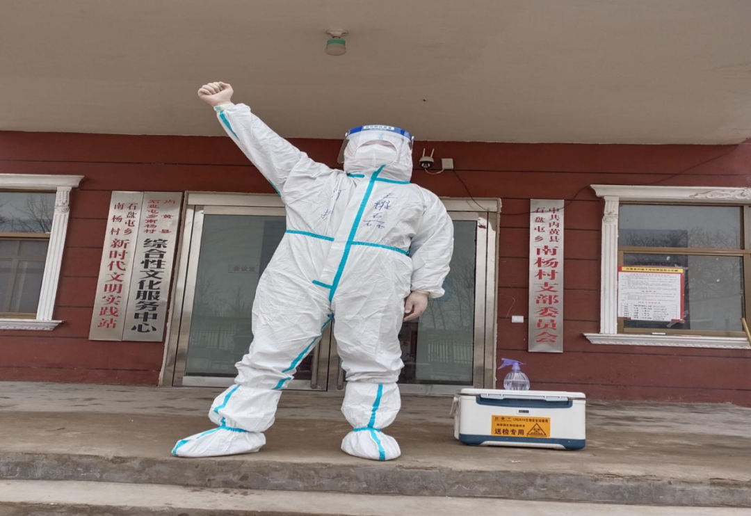 在安阳市内黄县,20级康复一班王耀磊是当地的一名核酸检测录入信息的志愿者,他通过自己第一次当“大白”亲身经历,深刻体会到了医护人员的辛苦。他不敢喝水,不上厕所,寒风中冻到麻木,但陌生人的一杯热水、小朋友的一声声谢谢,就会让他瞬间充满力量,更加坚定战胜疫情的决心。