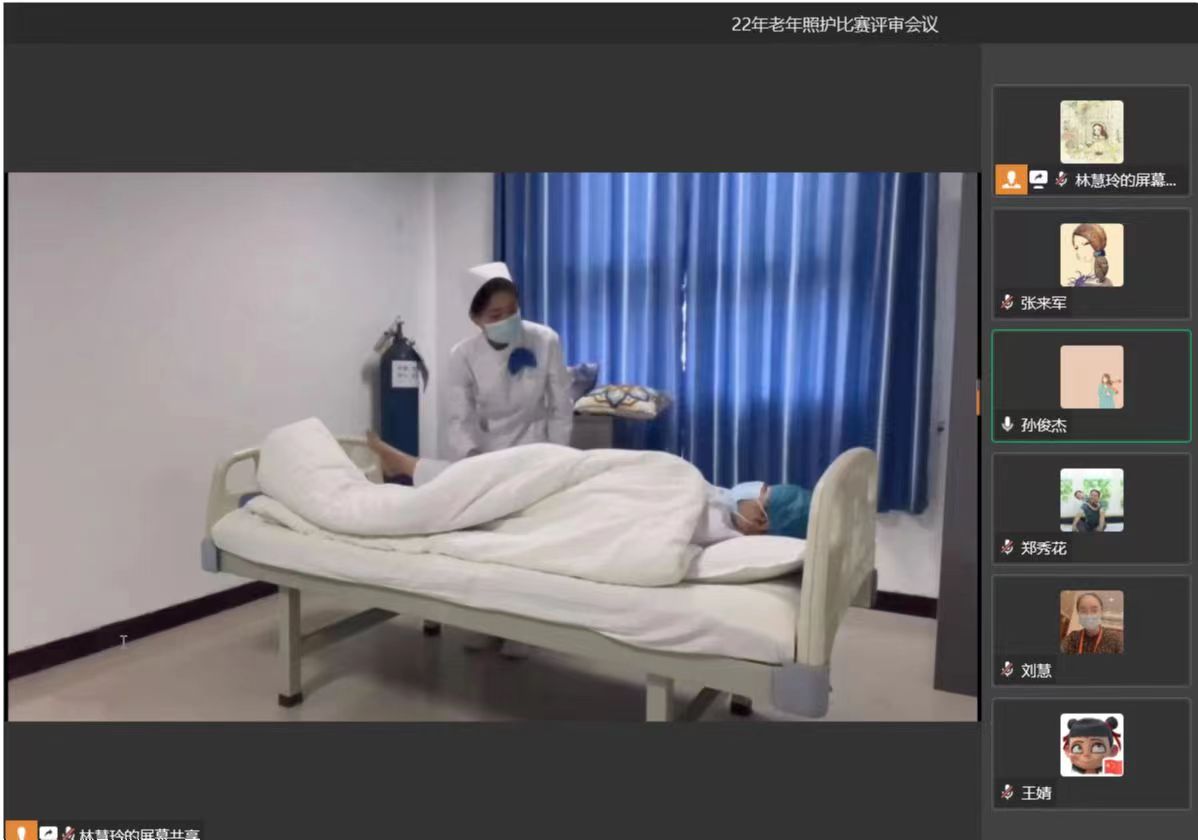 5月15日,参与比赛评审的教师通过企业微信进行参赛作品的评审工作,评委老师主要从操作技能、安全照护理念、沟通能力及总体印象四个方面对选手进行评定。会后,内科教研室主任孙俊杰代表全体评审教师进行了总结,她表示,学生努力克服困难参加比赛的精神特别令人感动,也向积极为本次比赛贡献力量的各位老师表示感谢,并让各位老师积极总结本次经验教训,争取将老年照护大赛越办越好。