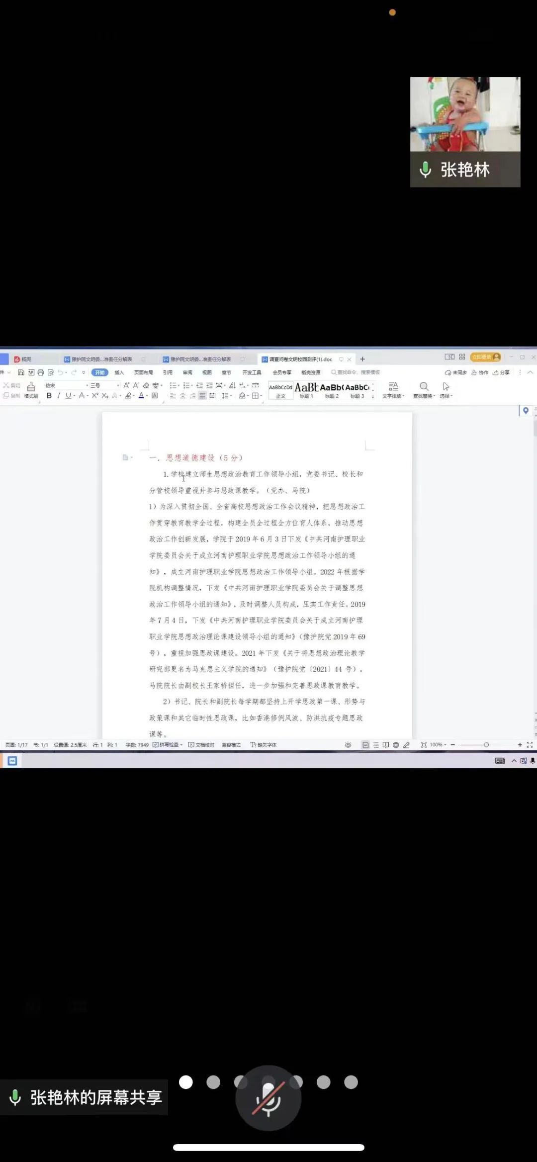 8月7日上午,我院通过企业微信召开创建河南省文明校园标兵工作问卷调查组专题会。副院长王家桥出席会议,我院精神文明建设工作领导小组调研考试组全体成员及21年新入职教师、部分思政教师及辅导员参加会议。会议由调研考试组组长、学工部部长李艳芳主持。