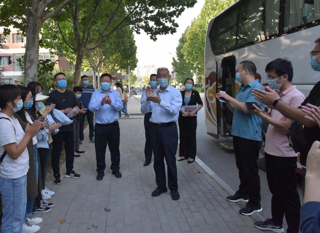 9月29日,在安阳市疫情防控指挥部号召下,为支援安阳师范学院兄弟院校齐心抗疫,共克时艰,我院党委高度重视,闻令而动,及时伸出援手,成立临时党支部,迅速组建由21名教师党员组成的志愿队伍奔赴抗疫“前线”,由学院办公室副主任李江伟同志带队,与兄弟院校齐肩并战共同抗击疫情。学院党委书记杜天信、副院长钟会亮、王家桥作“出征”动员讲话,鼓舞士气。