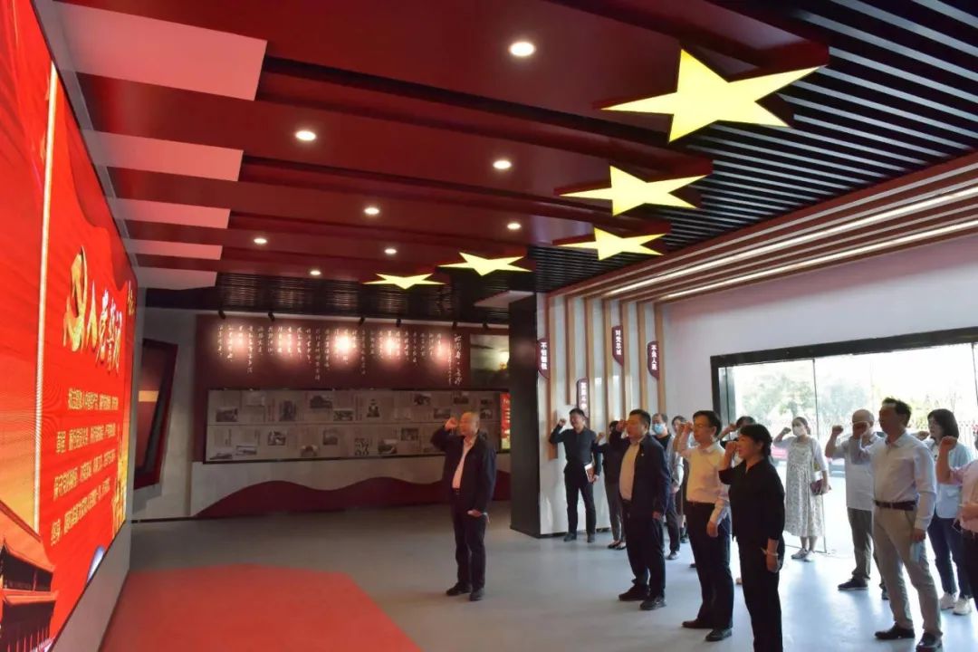 参观结束后,杜书记带领大家在大屏幕前举行了重温入党誓词活动。杜书记指出:历史是最好的老师,我们党历来重视党史学习教育,我们建设党史馆就是要通过历史与现实、理论与实践的比较对照,真实记录党的辉煌历史、党的奋斗发展、党的理论品质、党的成功经验,以达到以史铸魂、以史资政、以史育人的目的。