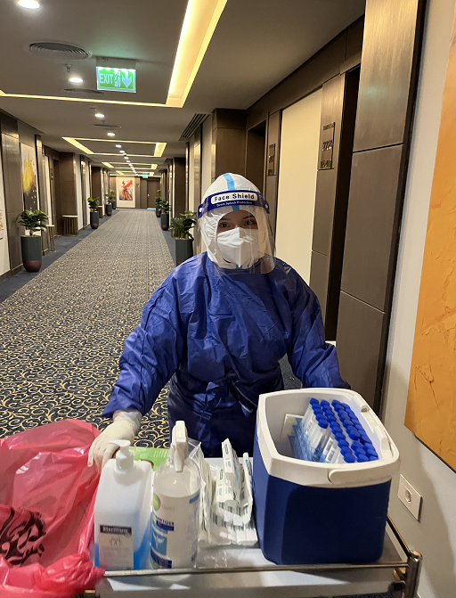在埃期间,原菊克服语言文化差异和40度的高温炎热天气等困难,与埃方实验机构、医务人员分享中国疫情防控经验、三级防护和核酸检测方法,有效减少了简单粗暴的检测手法造成的鼻腔黏膜误伤和医护人员感染,提高了闭环管理核酸检测效率和准确率。