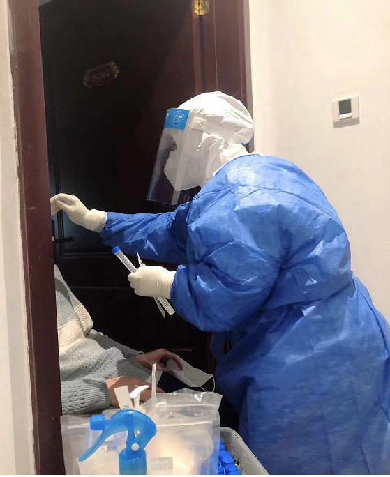 疫情期间,原菊多次参与志愿行动,和其他医护人员一起共同抗击疫情。她在郑州街道、社区及流动点进行核酸检测和疫情卫生宣传,为行动不便的居家老人及密接患者进行上门检测和消毒,为郑州抗击疫情贡献自己的力量。