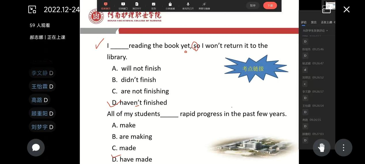 为助力学生实现升入本科院校的求学梦想,学院充分发挥“互联网+教育“优势,建立校内专升本辅导班以指导专升本涉考学生科学备考,提高自主复习效率。自12月24日起,学院专升本辅导班正式开班,辅导以线上教学形式进行。