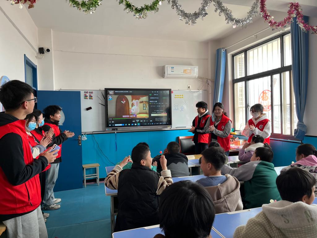为了让孩子们度过一个愉快的下午,经过前期充分的沟通与了解,师生志愿者们不仅带上了彩泥、蜡笔、画本等孩子们喜欢的文具,给小朋友分享了好吃的棒棒糖和饼干,还特意练习了几首儿歌准备和孩子们一起唱。
