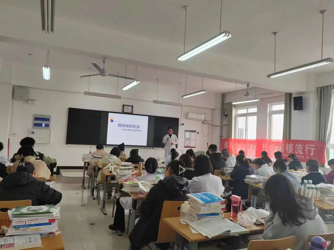 3月24日上午,医务室进班进行了结核病防控知识讲座。向同学们宣传结核病的症状、传播途径、治疗及预防措施,详细讲解国家实行免费治疗结核病的优惠政策。