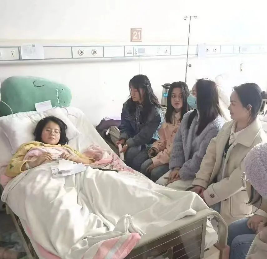 马雅玲同学,青海籍偏远地区学生,撒拉族。一次意外造成左股骨转子间骨折,高昂的医药费给这个单亲女孩家庭带来巨大经济负担。学校领导亲切关怀,系部领导亲临看望,辅导员时刻关心她的身体情况,班委和室友给予她帮助和陪伴。