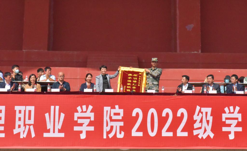 武装部部长李艳芳代表学院向承训部队赠送锦旗