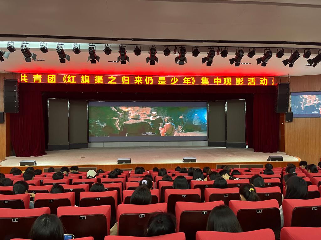 为深入学习贯彻习近平总书记视察陕西延安和河南安阳的重要讲话精神,在全校青年中掀起学习红旗渠精神热潮。按照团市委《关于公益观看红色教育电影<红旗渠之归来仍是少年>的通知》要求,校团委于4月26-28日组织团员青年在学术报告厅二楼集中观看红色教育电影《红旗渠之归来仍是少年》。全校约3000名青年团员分批观看了影片。