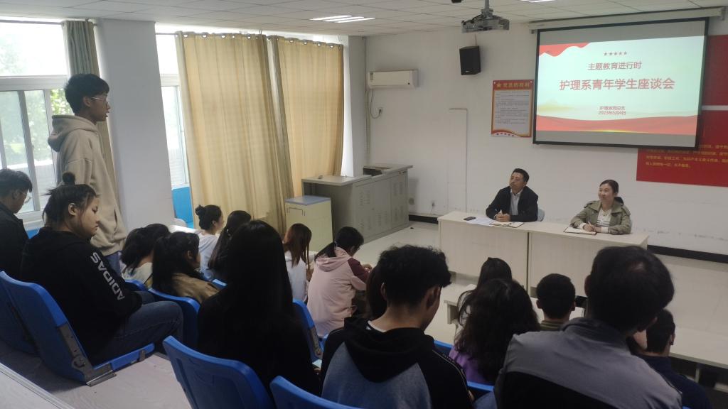 为深入学习贯彻习近平新时代中国特色社会主义思想主题教育,结合“我为群众办实事”实践活动,护理系党总支在五四青年节之际召开青年学生代表座谈会。护理系党总支书记王昆仑、辅导员代表和20余名来自学生干部、外省及少数民族青年学生代表共同参加。座谈会由党总支副书记王新主持。