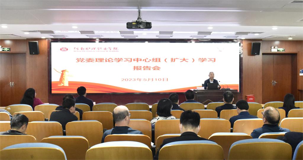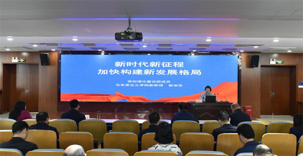 5月10日下午,星空在学术报告厅一楼召开党委理论学习中心组(扩大)学习报告会。学校理论宣讲团成员、马克思主义学院副教授崔淑芳作《新时代 新征程 加快构建新发展格局》专题报告。校领导班子成员,副科级以上干部、主题教育各工作专班组长参加会议。会议由党委书记杜天信主持。