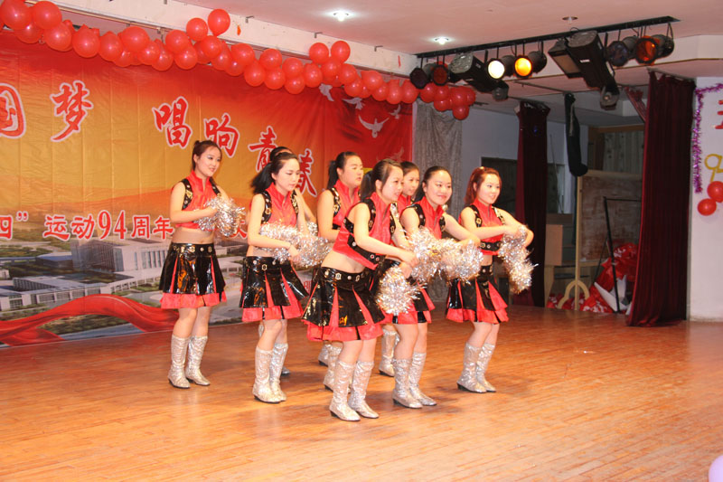 晚会开始前,全体师生起立,向在4月20日地震中遇难同胞默哀,表示深切哀悼。同学们手捧蜡烛,用手语表演了“我们在一起”,表达对雅安的深深祝福。诗朗诵“五四—--青春的赞歌”以饱满的热情和优美的语调表达了广大青年对青春的畅想。话剧“五四五四”别出心裁的剧情设计,展示了青年一代对五四运动的理解。史婷、黄晓璐等老师表演的舞蹈《传奇》将整个晚会推向了高潮。张良老师的歌曲《红星照我去战斗》,以独特的韵味吸引着大家,获得多次阵阵喝彩声。