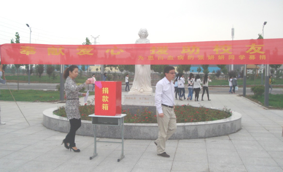 学生处、院团委组织爱心志愿者在校园宣传了她的事迹和贫困的家庭情况,并发出了“爱心捐款倡议书”,广大师生得知消息后,强烈地表达了为她捐款的愿望。