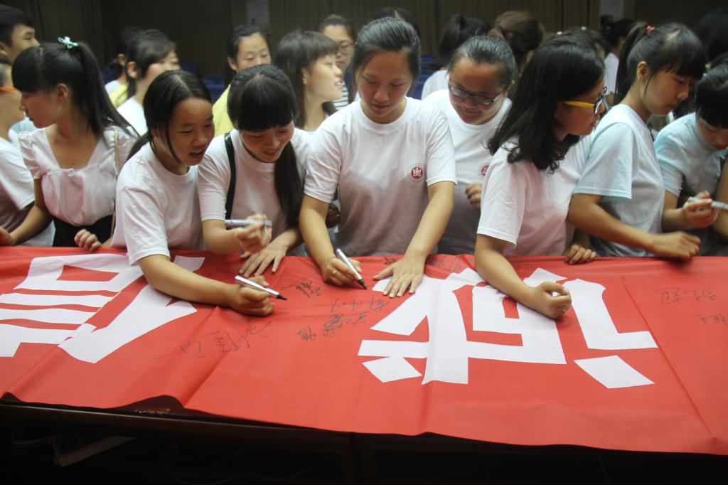 随后,教师代表和200余名学生郑重地在条幅上签下自己的姓名,表达了在今后的工作、学习中诚信做人,诚实做事,为学院争创市级文明单位做贡献的愿望。(学生处戚静)