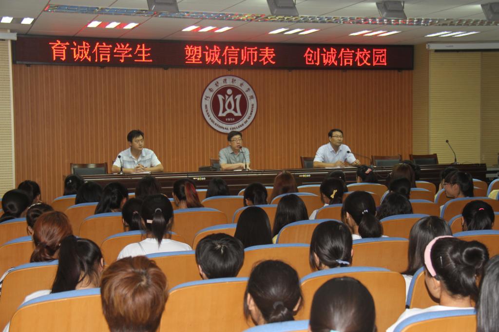 会议号召全校师生,恪守诚信,严守道德,努力践行社会主义核心价值观,为实习中国梦,建设美丽校园努力工作,认真学习,奉献青春。