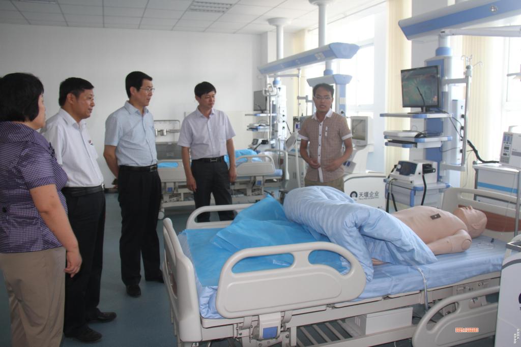 李书记一行在院领导的指引下,饶有兴致地参观了学院护理实训楼内的重症监护实验室、高级生命支持实验室、模拟手术室、儿科护理实训室等。在实验室先进的仪器设备前,李兴成一行边听工作人员讲解、边看操作演示,并不禁对学院实验室建设所取得的成绩啧啧称赞。在培训中心一楼,李书记还仔细察看了学院新校区总体规划设计沙盘,对新校区建设有了更加详细的了解。