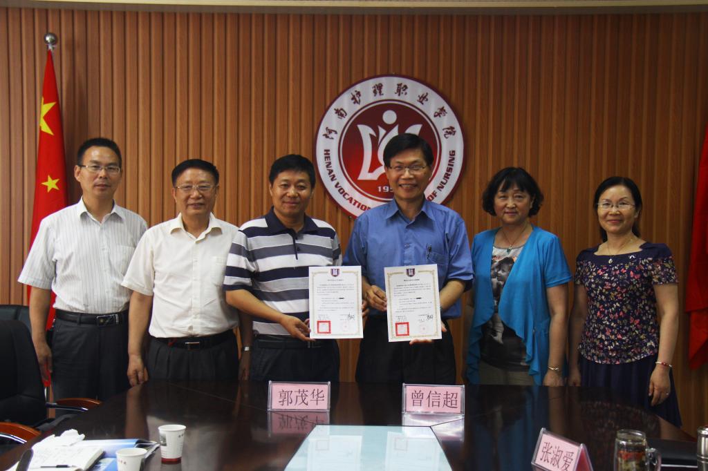 6月8日,台湾中华医事科技大学曾信超校长在教育部中国教育发展战略研究会沈浤秘书长,河南国际交流学院侯福禄院长、沈玉霞副院长的陪同下,莅临我院交流访问。
