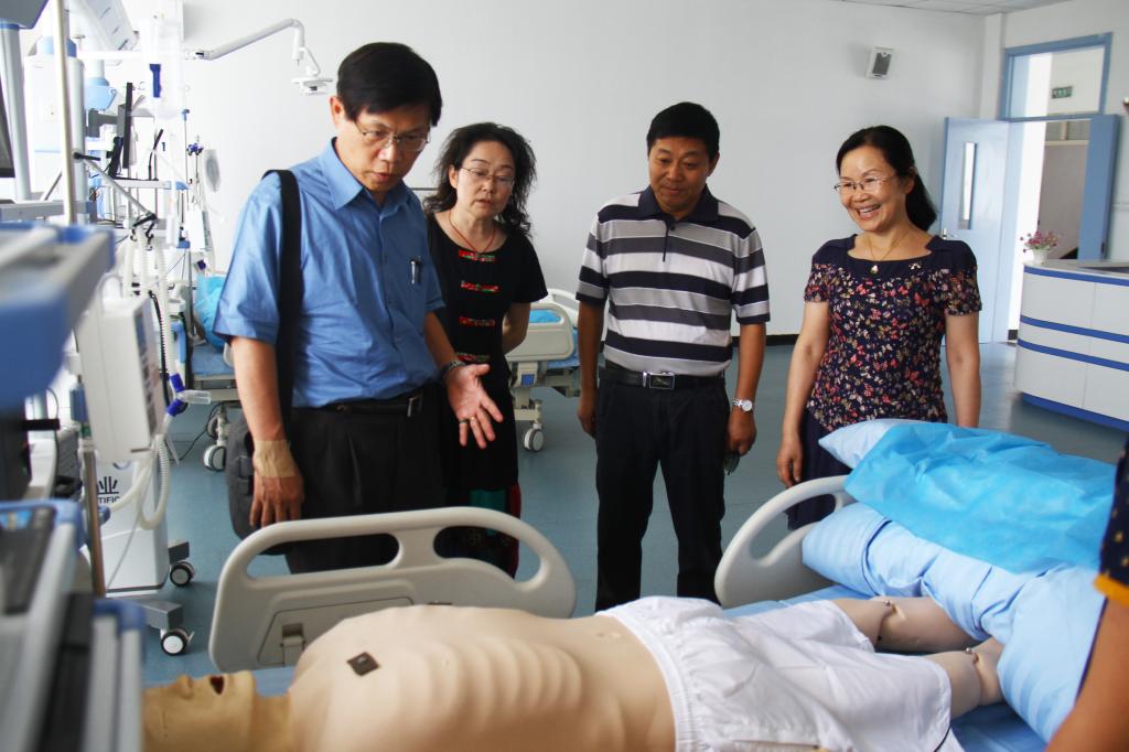 在学院郭茂华院长、钟会亮副院长、张淑爱副院长等的陪同下,曾信超一行饶有兴致地参观了我院护理实训楼内的基础实训室、重症监护实验室、高级生命支持实验室等实训场所,对我院先进的实验实训设备、一流的实训条件大加称赞。
