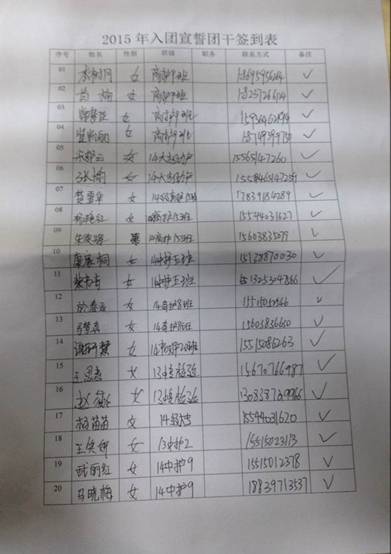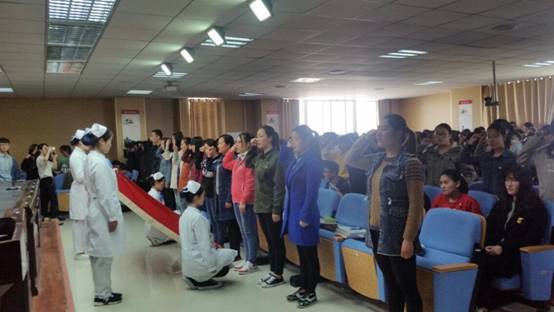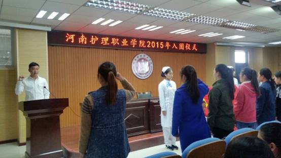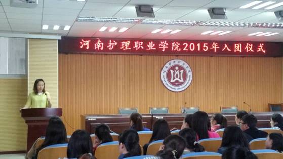 为加强大学生思想道德建设,培育和践行社会主义核心价值观,2015年4月14日中午,学院团委在基础实训楼三楼学术报告厅举办了隆重的新团员入团宣誓仪式,仪式在嘹亮的团歌中拉开帷幕。此次共有336名学生加入共青团,在庄严的入团宣誓中由老团员为新团员佩戴团徽,并面向团旗庄严宣誓。