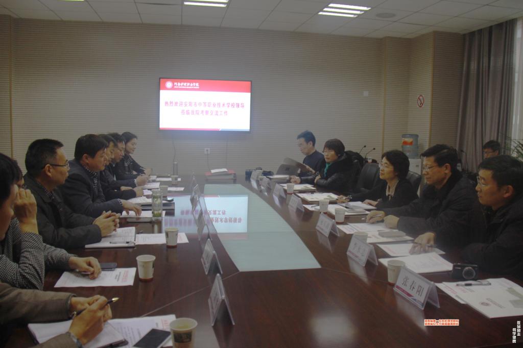 12月10日下午,安阳市中等职业技术学校领导班子一行7人在校长常慧芹带领下来我院考察交流校园文化建设。考察交流会在学院第二会议室举行,院领导花明、胡景团、钟会亮、王家桥出席会议,党委办公室、党委组织宣传统战部、纪检监察室负责人参加了会议。