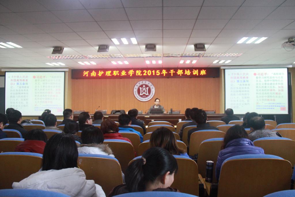 为认真贯彻落实党的十八届四中、五中全会精神,深入学习贯彻习近平总书记系列重要讲话精神,加强我院中层干部的教育培养和队伍建设,全面提升中层干部的理论修养、领导能力和决策水平,我院于12月4日特邀河南大学党委组织部张秋梅副部长及中共河南省委党校党建部主任郭献功教授来院为我院的中层干部及党务管理干部进行专题培训。院党委副书记、纪委书记胡景团主持培训会。