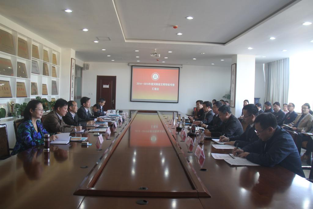 10月27日,以河南财经政法大学党委副书记李随生为组长的省文明学校考察组莅临我院,对学院创建2014-2015年度河南省文明学校工作进行考察。