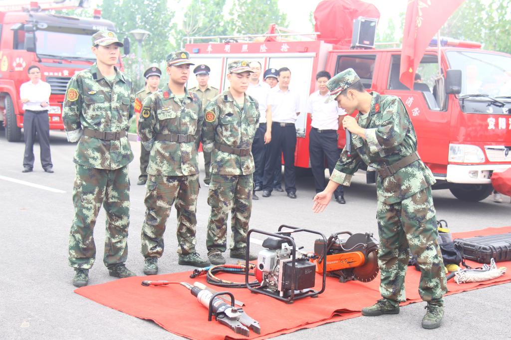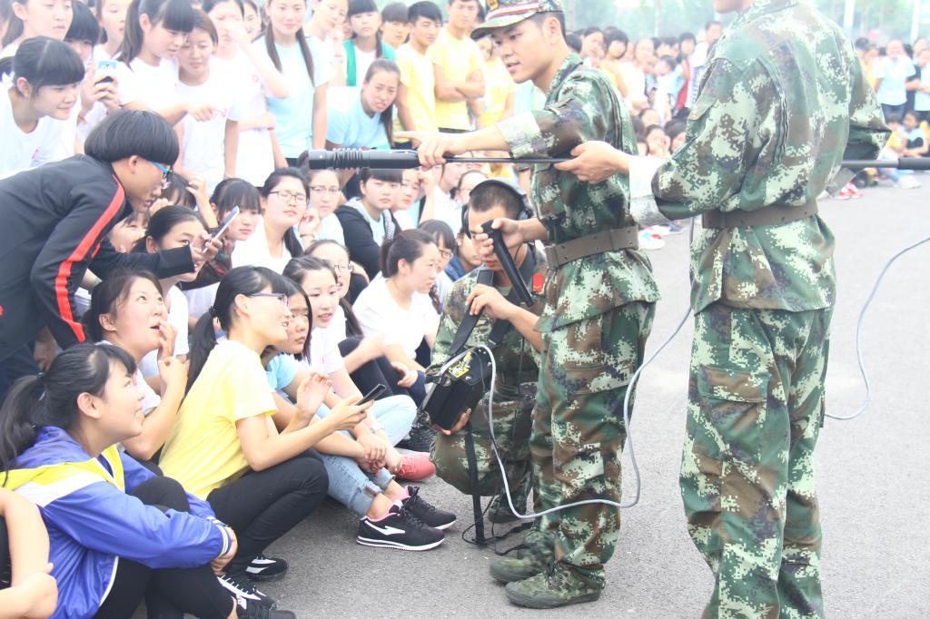 首先,消防战士向同学们依次展示了消防液压钳、切割机等常用破拆工具的使用方法,以及生命探测仪、抗高温防护服、举高喷射消防车等高科技消防设备;随后消防教官从如何报火警、火场自救及逃生方法等方面向同学们进行了详细讲解,并演示了灭火器的操作程序。最后,部分学生代表现场使用灭火器进行了灭火实战演练。