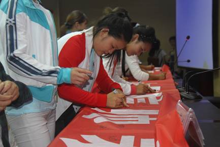 为践行社会主义核心价值观,深入开展“诚信”宣传教育工作,提高全院师生的诚信意识,营造诚信校园的良好氛围,9月10日晚,我院在学术报告厅隆重举行了诚信教育签名活动。2015届新生和教师代表共300余人参加活动。