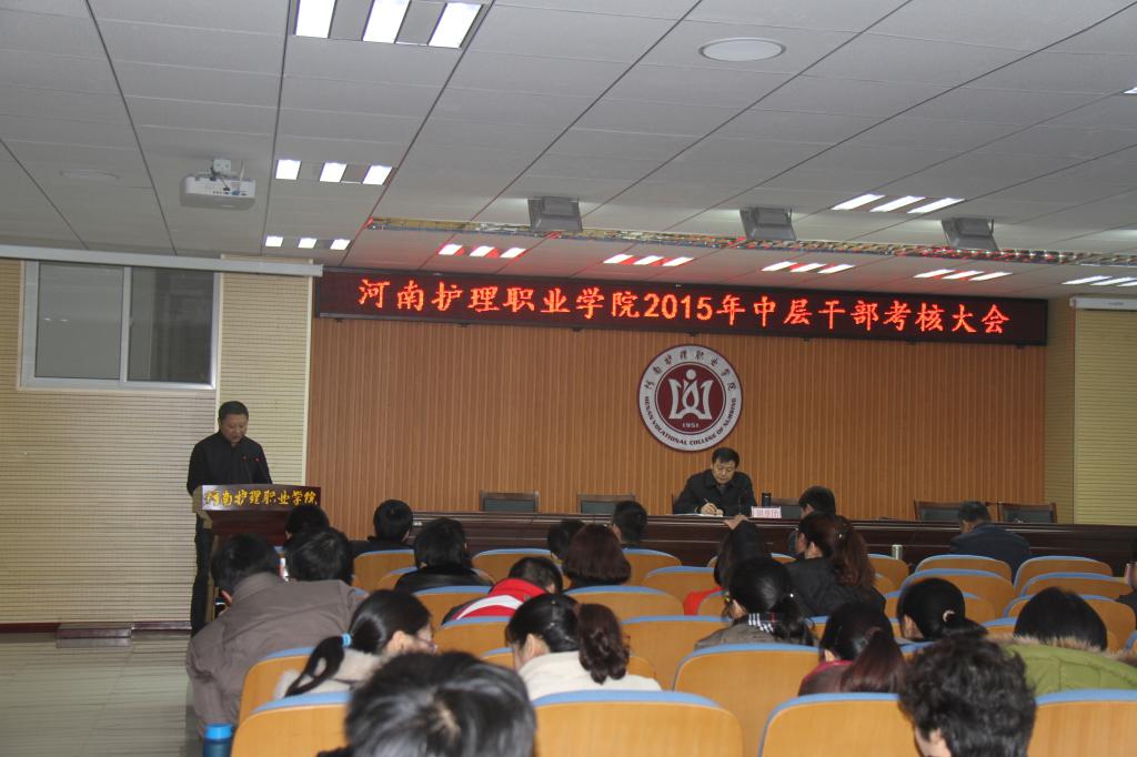 12月27日下午,我院在学术报告厅召开2015年度中层干部年度考核大会,院领导花明、郭茂华、胡景团、钟会亮、张淑爱、张官印、王家桥出席会议,全体中层干部及职代会代表参加了会议,会议由党委副书记胡景团主持。