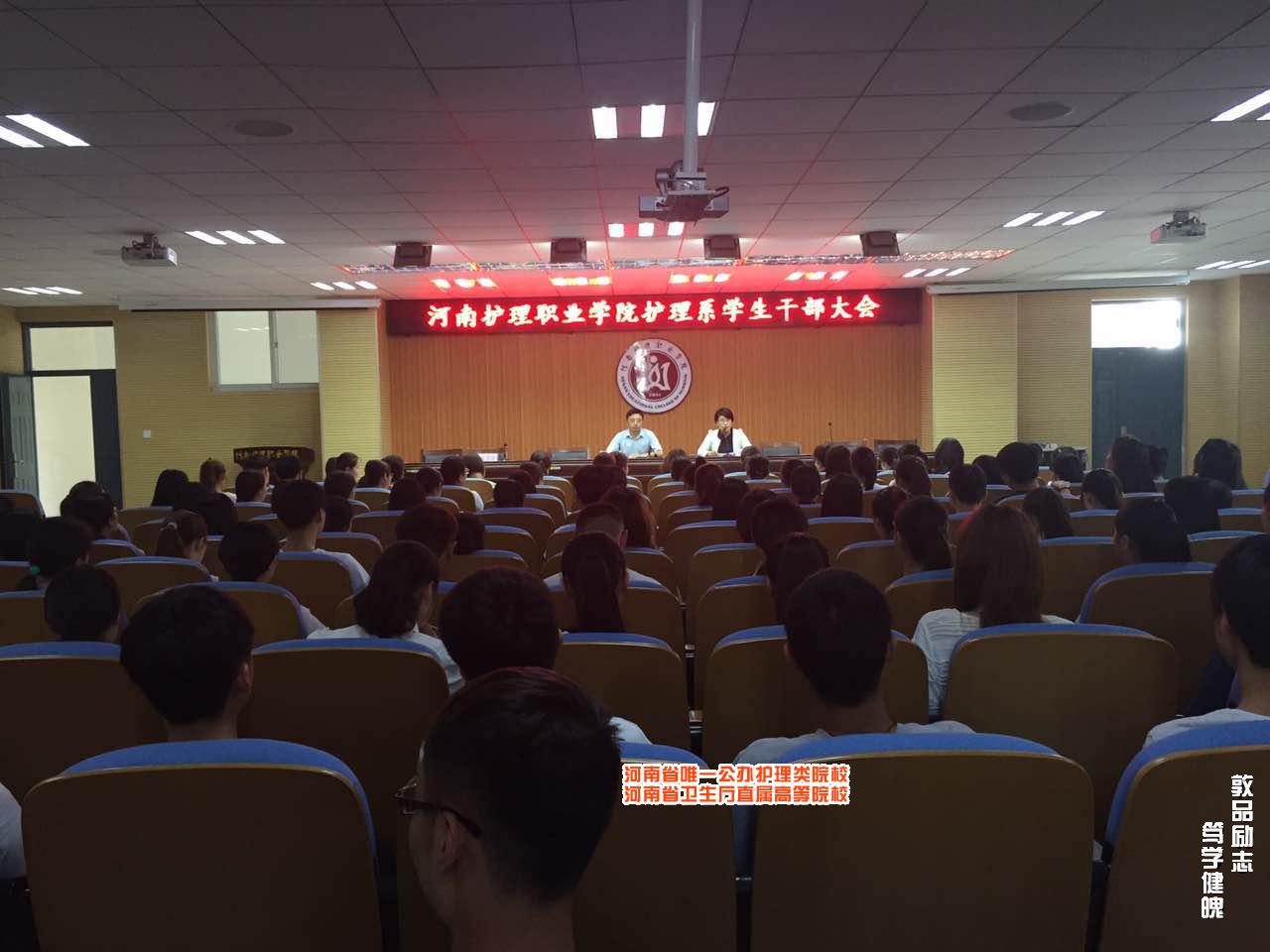 6月1日下午,护理系在学术报告厅召开全体学生干部大会。护理系党总支书记王昆仑、护理系全体专兼职辅导员、系学生会、系团委、系年级组长及2015级各班班长、团支书共计200余人参加了大会。会议由党总支副书记胡丽芬老师主持。