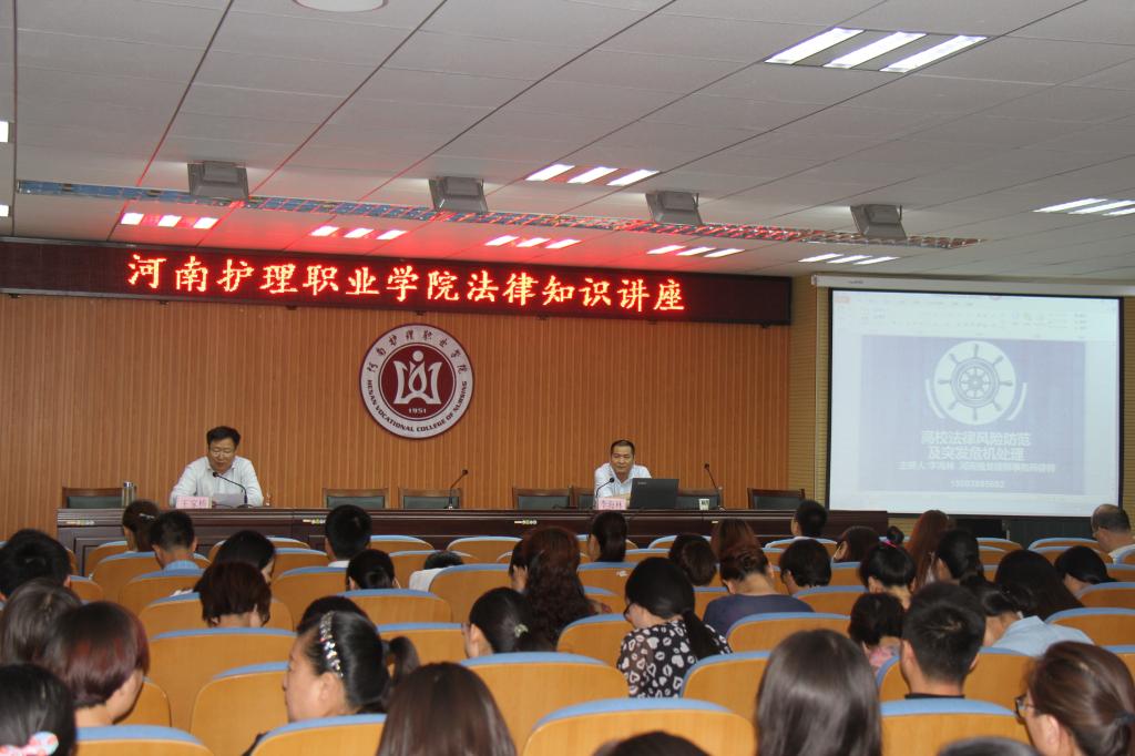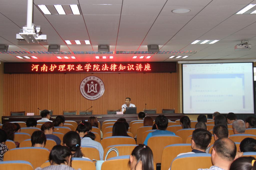 学院特别邀请了河南豫龙律师事务所李海林主任为全体教职工进行法律知识讲座。在讲座中,李主任从亲身经历的一些生动的案例为切入点,语言风趣幽默,很好的吸引了大家的注意力,他从多个角度为大家阐述习惯、规则、法律,学校法律事件预防及处理,学校突发危机事件及处理等相关法律知识。
