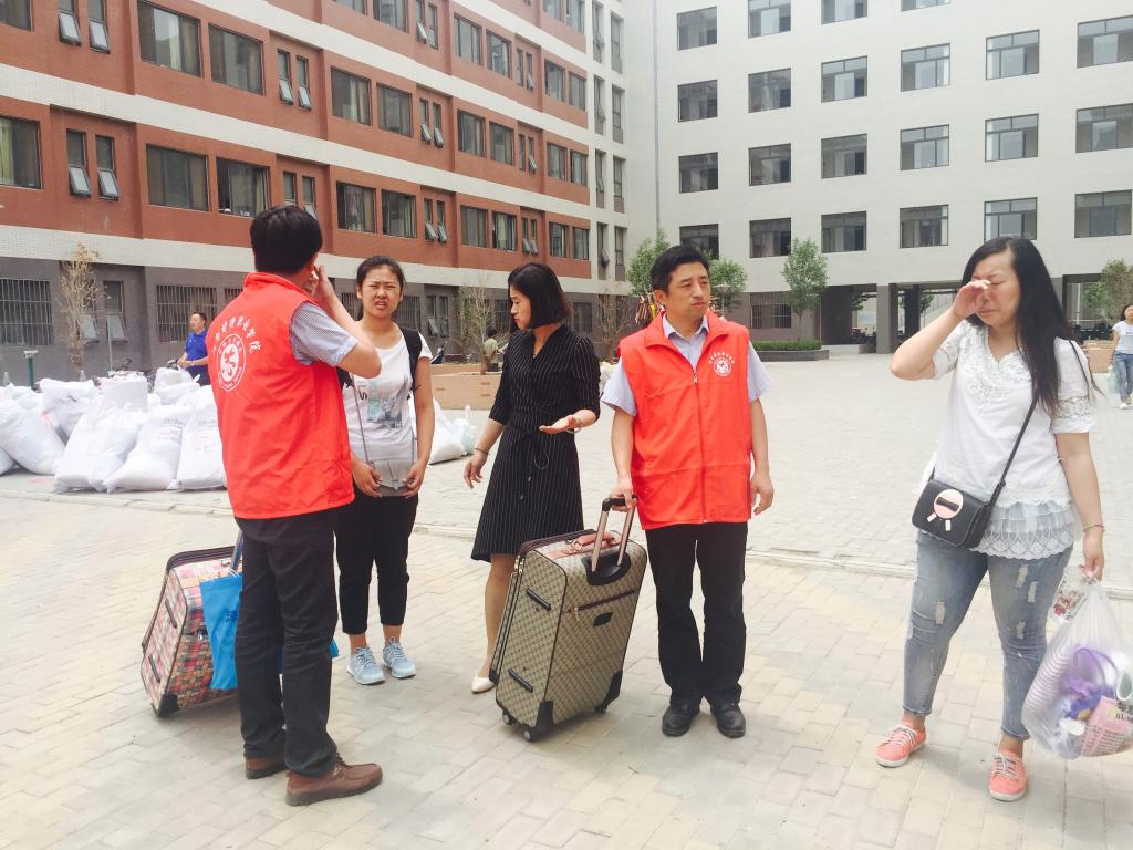 “大一入校时是学长学姐们接过我们手中的行李,现在我们要离校了,我们的老师来服务,帮我们搬运行李,我们非常感动!非常幸福!”一位即将赴哈尔滨医科大学第一附属医院实习的2014级21班李明月同学眼含热泪激动地说道。面对细致周到的服务,毕业生们十分感动,“谢谢”、“辛苦了”等感激的话语不绝于耳,志愿者的热情服务让毕业生们感受到自己不是孤单地离开,而是被温暖相送。
