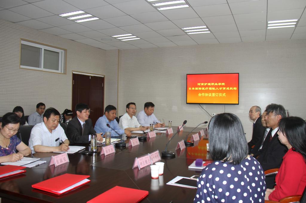 5月23日上午,我院与日本国际医疗福祉人才育成机构(NPO)、神户国际语言学院在第二会议室签订合作协议。日本国际医疗福祉人才育成机构(NPO)理事长廣田悌仁及神户国际语言学院理事长木下和昌、学院长山本里美一行六人及我院全体领导班子成员、护理系、教务处、人事处等部门的主要负责人共同见证了这一历史时刻。