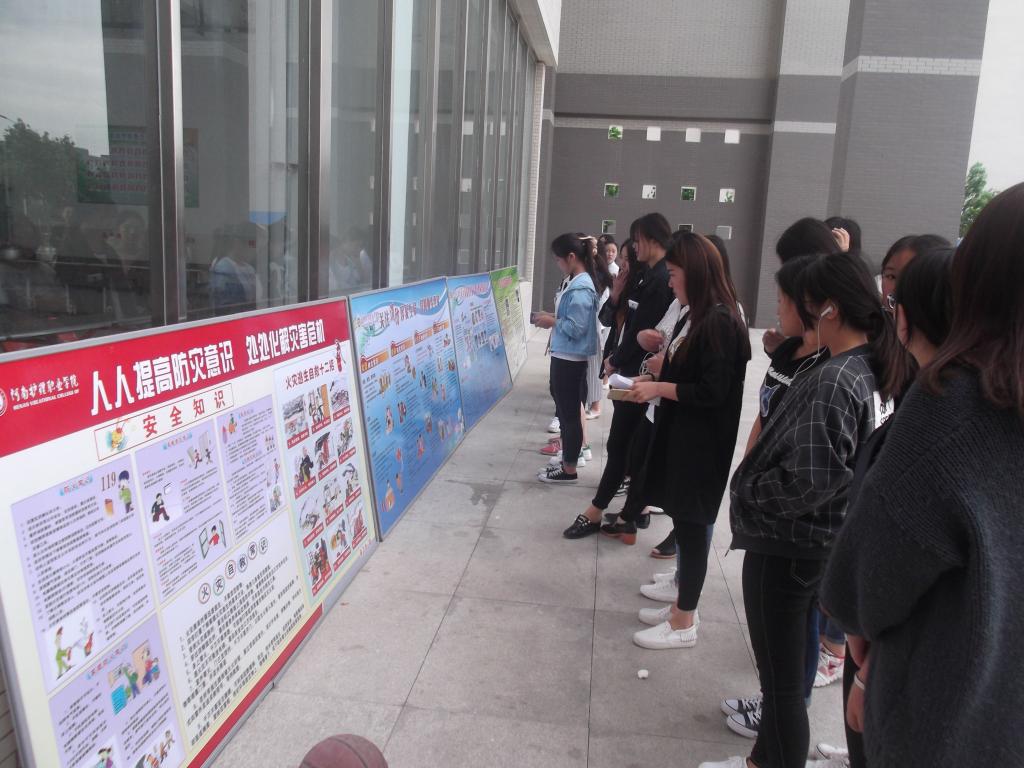 学院保卫处在教学楼、学生宿舍楼和食堂门口等人员密集场所摆放了防灾减灾宣传展板。把“火灾逃生十二招”、“校园防火小常识”、“上课时发生火灾怎么办”等防灾减灾常识通过精简的语言和生动的漫画广泛宣传给学生。