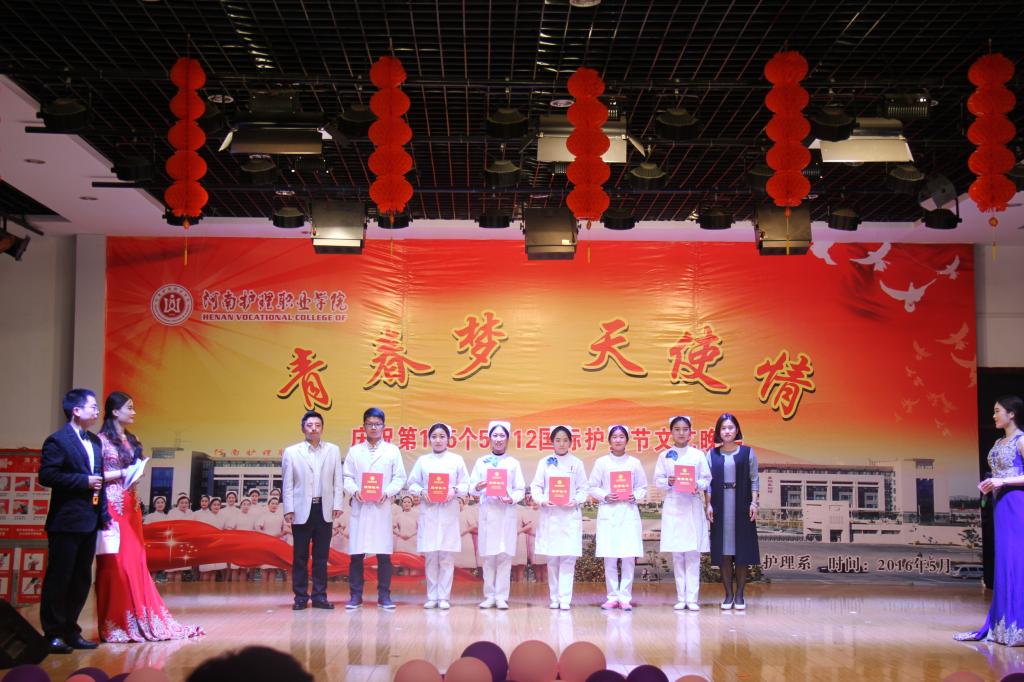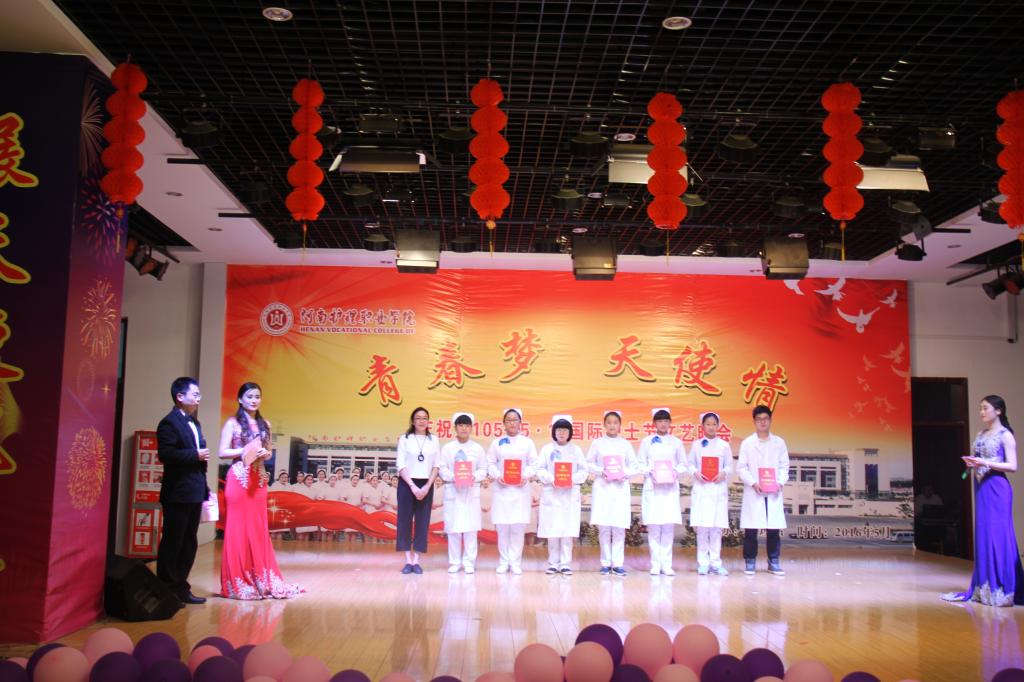 晚会还对护理系“家文化”主题教育系列活动和“5·12”国际护士节活动进行总结表彰,学院领导分别对在“最美全家福•梦载青春”、 “最暖家庭故事•天使心声”演讲比赛和在“最美护生”护理礼仪风采大赛等活动中表现突出的优秀团体和个人进行了颁奖。