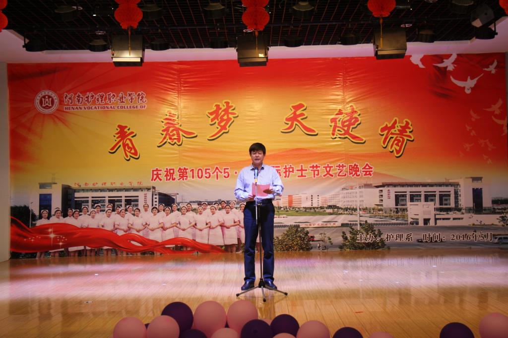 花明书记在晚会上致辞,向全院护理教育工作者和同学们致以节日的问候,希望同学们坚定理想信念,珍惜学习机会,掌握专业技能,提高职业素养,继承和发扬不畏艰险、甘于奉献、救死扶伤、勇于献身的南丁格尔精神。