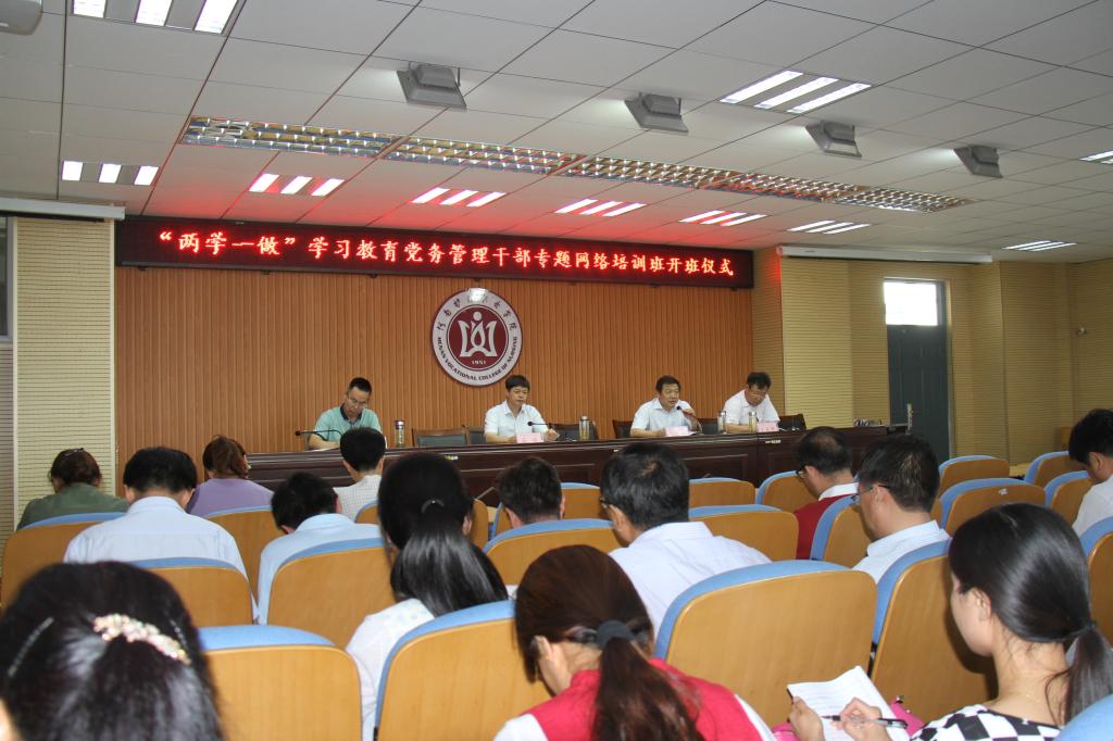 为进一步提升我院党务工作者业务能力,不断提高学院党建工作水平,结合“两学一做”学习教育工作开展情况,经院党委研究,决定举办党务管理干部“两学一做”学习教育专题网络培训班,并于7月6日下午在学术报告厅举行“两学一做”党务管理干部专题网络培训班开班仪式,院领导花明、胡景团、钟会亮、王家桥出席会议,全体党务管理干部参加会议,会议由党委副书记、纪委书记胡景团主持。